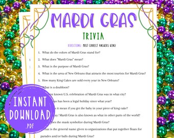 14 Mardi Gras Party Printable Or Virtual Games Ideas Activities For Enjoymyprintables from cdn.shopify.com The festival first landed on what are now american shores in 1699, and we've been parading, dancing, and partying in … Jan 23, 2013 · how well do you know your mardi gras trivia? Martes de carnaval in mexico, fastan in sweden, martedi grasso in italy, j'ouvert in trinidad, and karneval in germany. Mardi gras in america was begun in new orleans. You are able to dictate the rules for your children to decide how many. What do the colors of mardi gras stand for? Preview this quiz on quizizz. If you get stumped, you can find all the answers by reading mardigrasneworleans.com (or you can just scroll down to the bottom of the page).
